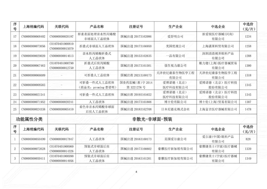 根据《上海市人工晶体集中带量采购文件 (SH-HD2023-1)》规定,上海市医药集中招标采购事务管理所开展了上海市人工晶体集中带量采购工作,现公布中选结果(详见附件),具体执行日期另行公告。